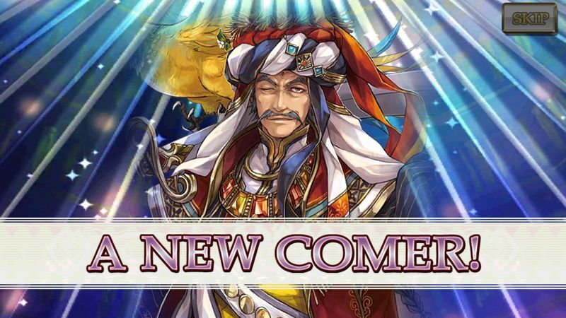 | 最終WAVE時に援軍として60秒間登場する。その間、ダメージを受けない。さらに、戦場にいる味方に必殺技の威力が5%上がる効果を付与する。 【英雄技/連撃】前方範囲内の全ての敵に3回ダメージ(?倍)を与え、弾き飛ばし、毒/スロウにする。マナが多いほど必殺技の威力が(?%)上がる。その後、自身に最も近い味方2人に、戦闘不能になった際に1回耐え、HPが回復し、一定時間ダメージを受けなくなる効果を与える。 | |