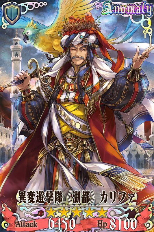 | ◆戦場にいる味方の攻撃力(?%)と防御力(?%)と移動速度が上がる。<湖都>所属の味方の場合、さらにクリティカル発生率とクリティカル威力(?%)が上がる。 ◆戦場にいる敵の数が多いほど味方の攻撃力(?%)と防御力(?%)と移動速度が上がる。<湖都>所属の味方の場合、効果が(?%)上がる。 ◆戦闘開始時とボスWAVE開始時、軌道上の敵を一定時間(?秒)自動で攻撃(?倍)し、毒/スロウにする赤い鳥を5羽召喚し、同時に攻撃した敵の攻撃力(?%)と防御力(?%)と移動速度が一定時間(?秒)下がり、自身の攻撃力(?%)と防御力(?%)と移動速度が一定時間(?秒)上がる必殺技が発動する。 前線で戦っていた時を思い出すね。さて、どんな異変が待っているかな? | |