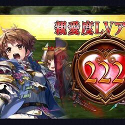 | ◆全ての必殺技が使えるマナを1つ持った状態で戦闘を開始する。この効果は、サブパーティでも発動する。 ◆攻撃力(?%)と防御力(?%)と移動速度とクリティカル発生率が上がる。戦場に自身以外の味方がいると効果が(?%)上がり、さらにクリティカル威力(?%)が上がる。 ◆攻撃間隔が早くなり、敵の攻撃で弾き飛ばなくなる。さらにクリティカル攻撃時、クリティカル攻撃が5回になり、クリティカル威力が(?%)上がる。また目の前の敵から受ける通常攻撃のダメージを(?%)下げ、範囲内にいる全ての敵にクリティカル攻撃でカウンター(?%)を5回行う。ただし、連続で発動しない。 世界を越えて絆を繋ぐ、もう一人の隊長。 | |