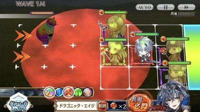 | ◆敵陣にいる味方の攻撃力(?%)と防御力(?%)が上がり、HPが徐々に(?%)回復する。自陣にいる味方の攻撃力(?%)とクリティカル威力(?%)が上がり、HPが徐々に(?%)回復する。 ◆WAVEが進むたび、味方全体のHPが上限を(?%)超えて(?%)回復し、攻撃力(?%)とクリティカル威力(?%)が一定時間(?秒)上がる。また2WAVE進むたび、万象マナを1つ獲得する。 あたしの獲物の銘も、ドラゴンスレイヤーなんだ! | |