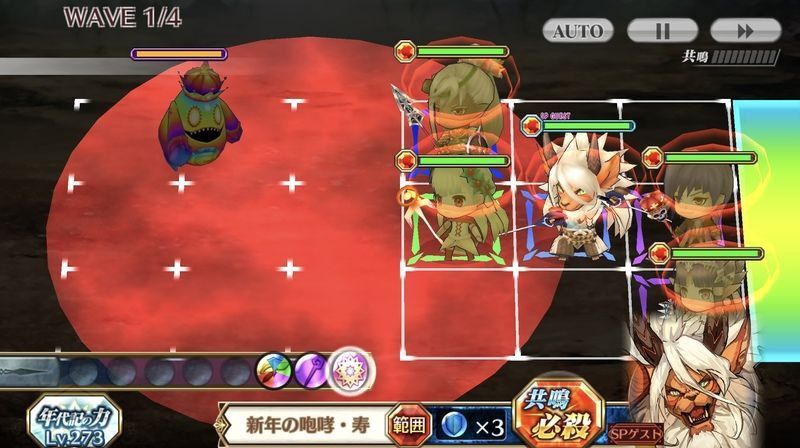| ◆マナを所持していると味方全体の攻撃力(?%)と防御力(?%)と移動速度が上がる。マナが多いほど効果が(?%)上がる。またマナを獲得するたび、味方全体の攻撃力(?%)と防御力(?%)とクリティカル威力(?%)が一定時間(?秒)上がる。 ◆通常攻撃を250回当てるたび、全ての必殺技が使えるマナを1つ獲得する。 我流だが、ホンモノの獅子舞をお見せしよう | |