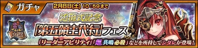 ガチャ80回で…「第五領主代行 シダレ」プレゼント!