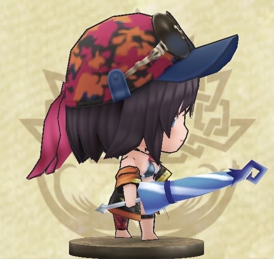 | PROFILE | 魔具『水神の鎧布』を身にまとったクロエ。黒いビキニと帽子は元気っ子の証。夏の日差しに健康的な肌が映える! |