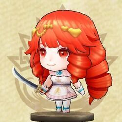 | ◆攻撃力(?%)とクリティカル発生率が上がる。戦場に自身以外の味方がいると効果が(?%)上がり、さらに必殺技を発動する時に必要なマナが2つ減る。 ◆攻撃間隔が早くなり、敵の攻撃で弾き飛ばなくなる。さらに攻撃時、攻撃した敵の攻撃力(?%)と防御力(?%)と移動速度が一定時間(?秒)下がる。またクリティカル攻撃時、クリティカル攻撃が5回になり、クリティカル威力(?%)が上がり、範囲攻撃になり、ダウンにする。 《希望の聖歌騎士》として未来で活動する、聖王国の王。 | |
