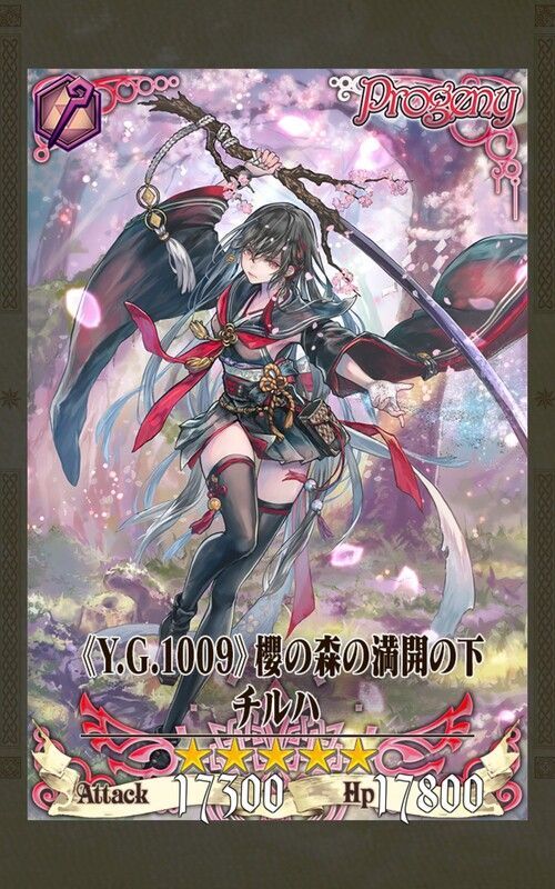 | ◆攻撃力(?%)とクリティカル発生率とクリティカル威力(?%)が上がる。また敵を倒した時、一定確率で全ての必殺技が使えるマナを獲得する。地形が夜の場合、必ずマナを獲得する。 ◆攻撃間隔が早くなり、遠距離通常攻撃のダメージを(?%)下げ、敵を貫通して反射し、盾を破壊する。また近接通常攻撃力が(?%)上がり、近接クリティカル攻撃時、クリティカル攻撃が範囲攻撃になり、遠距離クリティカル攻撃時、クリティカル攻撃が5回になり、範囲攻撃になる。 約1000年後の大帝都で出会った、《櫻の森の満開の下》の女性。 | |