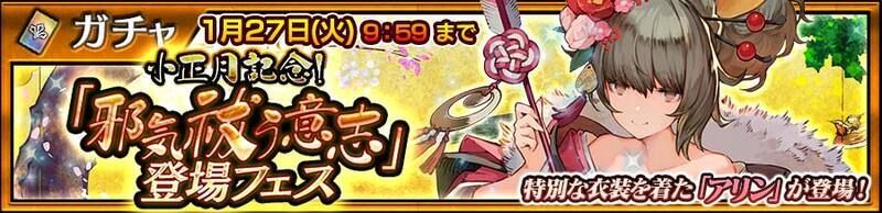 小正月記念!「邪気祓う意志」登場フェスでは、ガチャを一定回数引くと様々な特典をプレゼント!