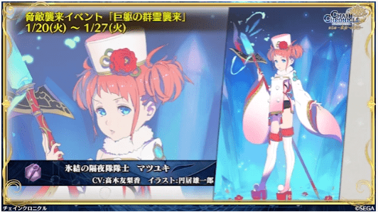 本編開催期間中、通常の脅敵バトルや「総攻撃」に参加することで「氷結の隔夜隊隊士 マツユキ」を仲間にすることができます。