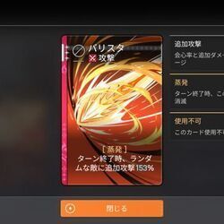 ![]() | ★☆☆ バリスタをバフ後、強制発動に変化。 バフ量は優秀だがドローが消えてしまうのがネック。 |