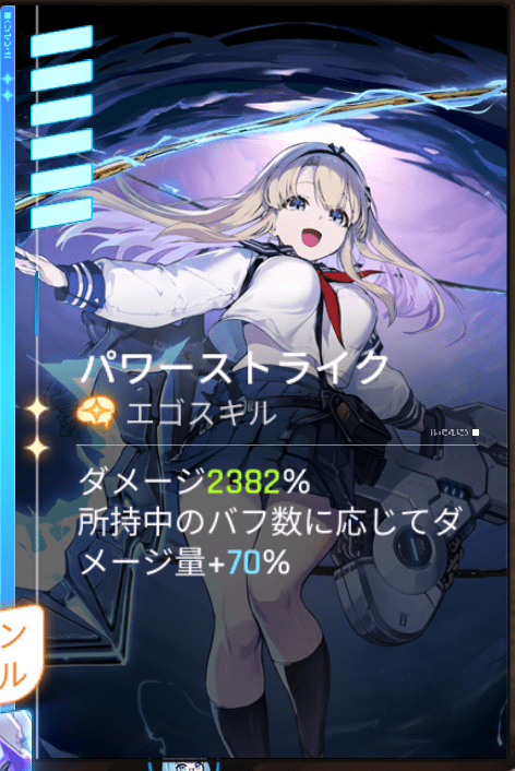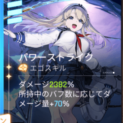 | 3凸 | おすすめ度:★★☆ パワーストライクのダメージ量が+100%になり、保有バフ数に応じてダメージ量増加効果が+20%になります。 |