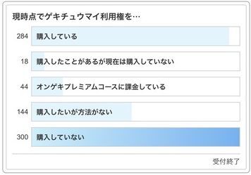 | 第67回 ゲキ!チュウマイ利用権購入状況調査 | 第68回 現在設定しているシステムボイスは? |