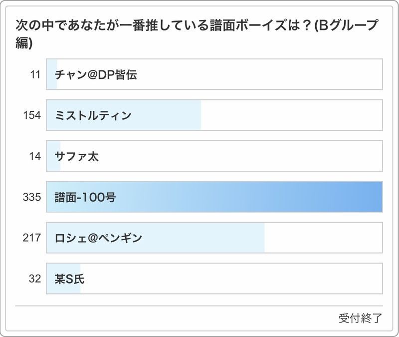 | 第31回 譜面ボーイズ総選挙第三週目 | 第32回 譜面ボーイズ総選挙第四週目 |
