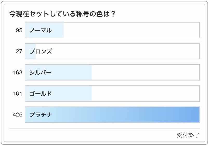 | 第83回 この中で効果を感じるのは⋯ | 第84回 セットしている称号の色は? |