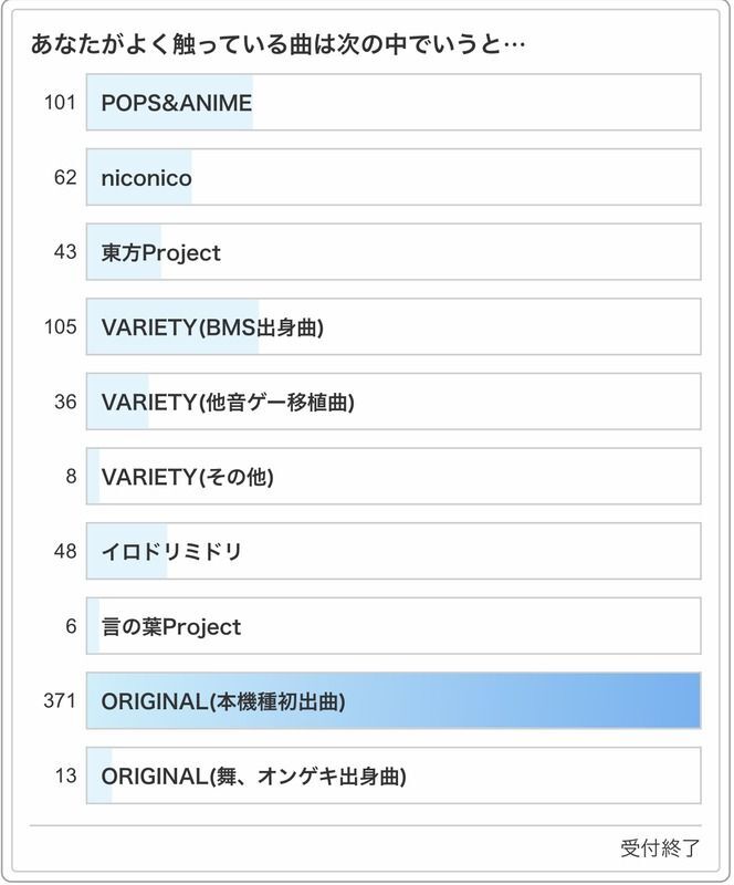 | 第7回 ゲームセンターへ行く時間帯 | 第8回 譜面作者人気投票(前半戦) |