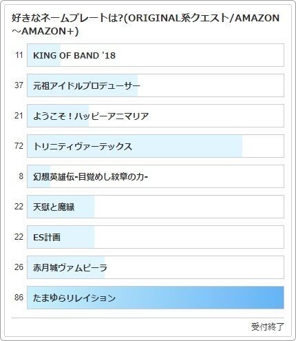 | 第135回 ネームプレート人気投票 (ORIGINAL系クエスト/ AMAZON~AMAZON PLUS) | 第136回 CRYSTAL ep.IV人気投票 |
