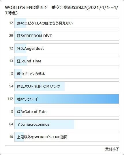 | 第147.7回B エイプリルフール2021 ク○アンケート7B ク○アンケート決敗戦 | 第148回 エイプリルフール2021 ク○譜面決定戦PARADISE |