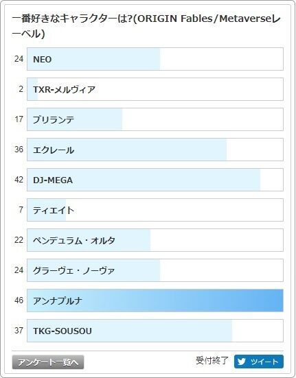 | 第165回 ORIGIN Fables Genesis Of Destinyレーベル人気投票 | 第166回 ORIGIN Fables Metaverseレーベル人気投票 |