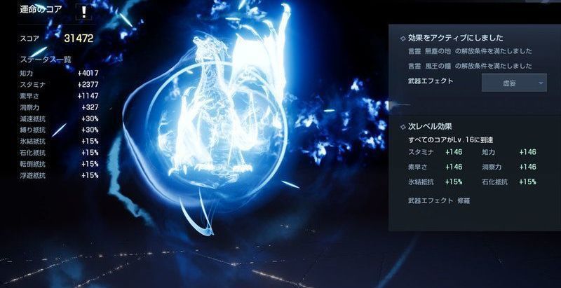「共鳴」を行うには「運命のコア」に装備した全てのコアのレベルが5以上になると発生します。