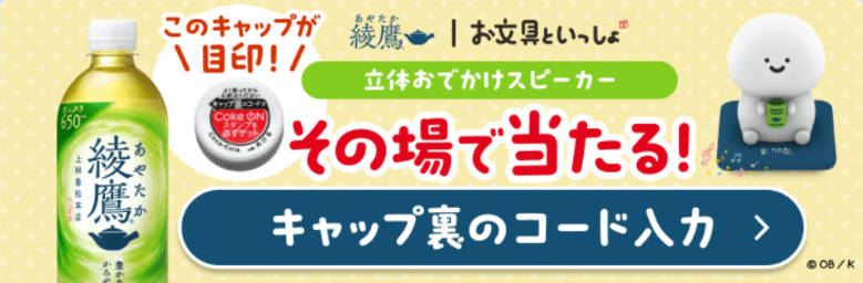 綾鷹のキャップ裏コードをスキャンするたびに抽選で限定デザインスタンプが貰える!(被りなし全6種ランダム)