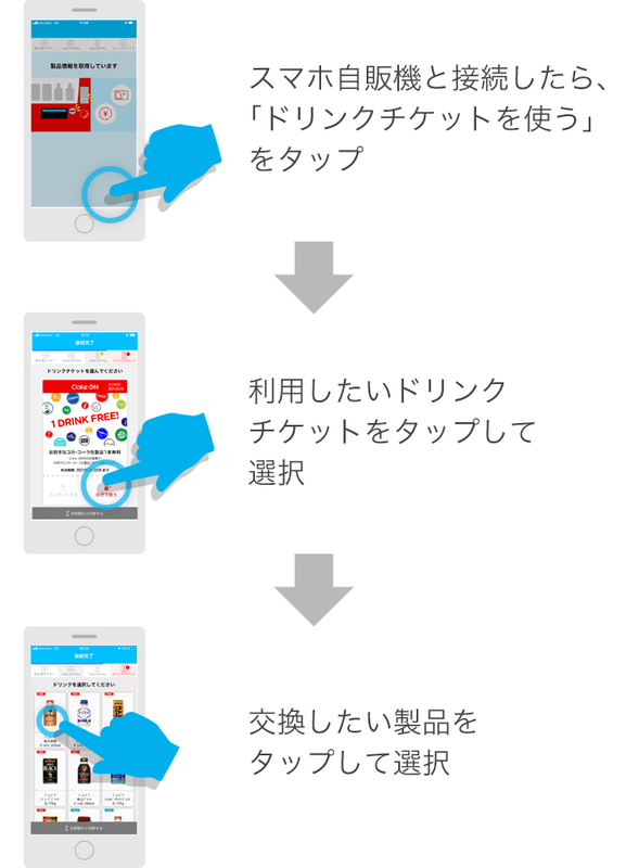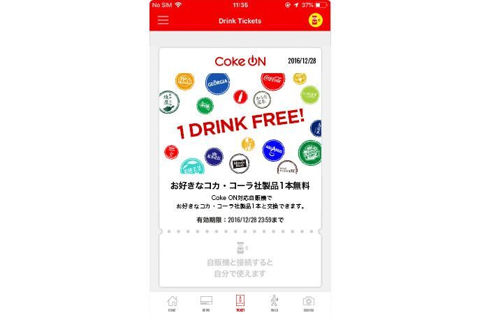 Coke ONアプリ内のキャンペーンに参加することで「お試しドリンクチケット」を貰うことができる。