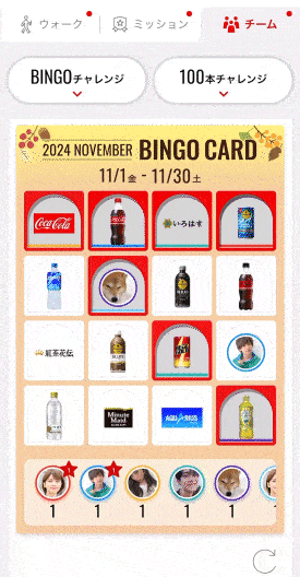 チームでドリンク100本購入を目指そう。BINGOチャレンジとは異なり期限はなく、達成した場合すぐに次回の「100本チャレンジ」に挑戦できる。