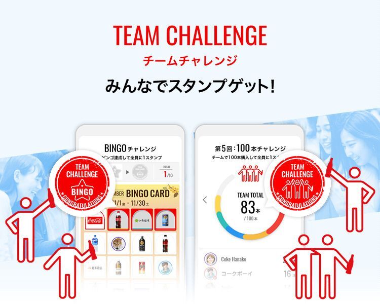 Coke ONユーザー2~8人でチームを作り、チャレンジ(ミッション)達成を目指す「Coke ON チャレンジ」の一種。