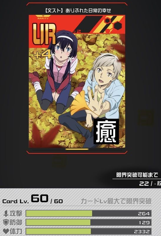 #コンパスのURカード『【文スト】ありふれた日常の幸せ』のスキルやステータスを紹介しています。『【文スト】ありふれた日常の幸せ』の評価を知りたい方は参考にしてみてください。