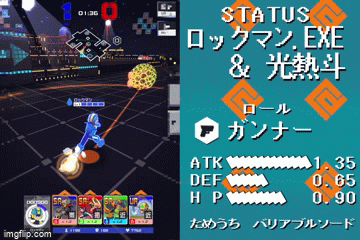 ロックマン.EXE&光熱斗のロールはガンナーです。通常攻撃は単発系で、射程が約6.5m程度となっています。