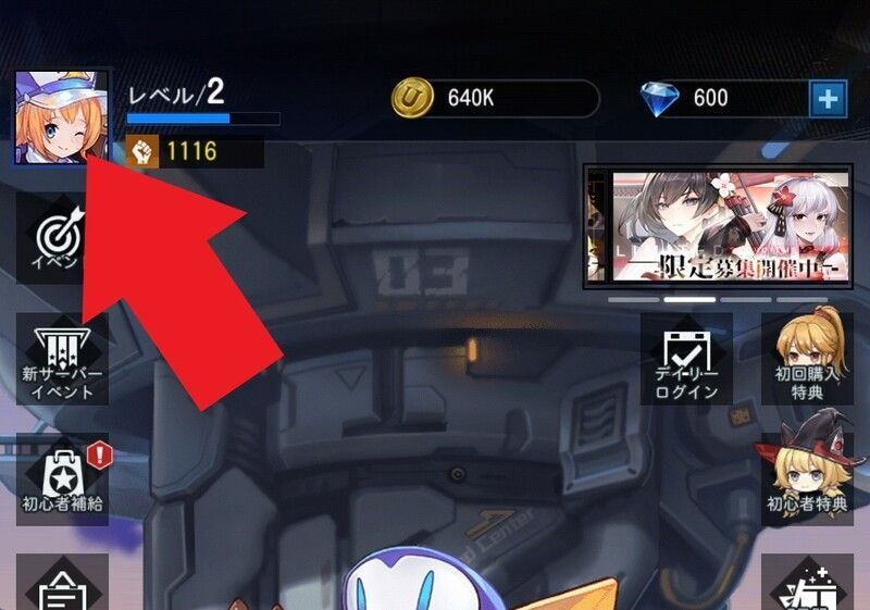 管制室の画面左上に配置されている「初心者補給」からダイヤ200個が貰えます。