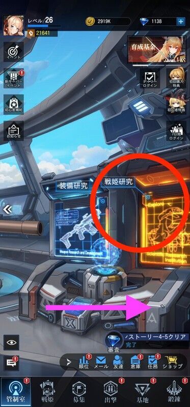 | ホーム画面右スクロールで「戦姫研究」へ移動 | ||