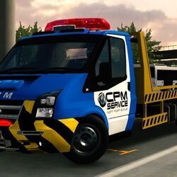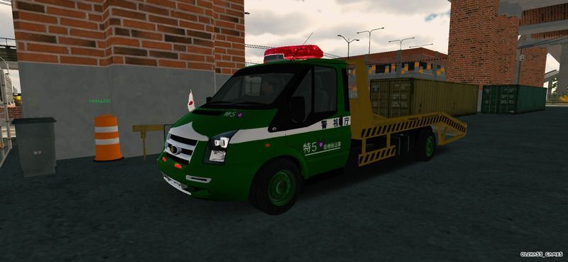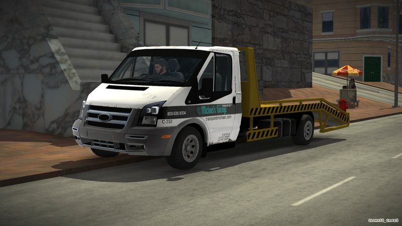 このゲームでは一定の速度が出ていると他プレイヤーの車の当たり判定が無効化されるが、この車両に限ってはいくら速度が出ていても荷台部分のみ当たり判定が無効化されない。これを利用してジャンプ台の様に遊ぶこともできる。このゲームでは一般的にレッカー車と呼ばれる。通常のトランジットと同じく車内にロールケージのようなものが組まれている他、こちらにはバイナルは貼れないもののウィンドウ上部にハチマキが着けられている。