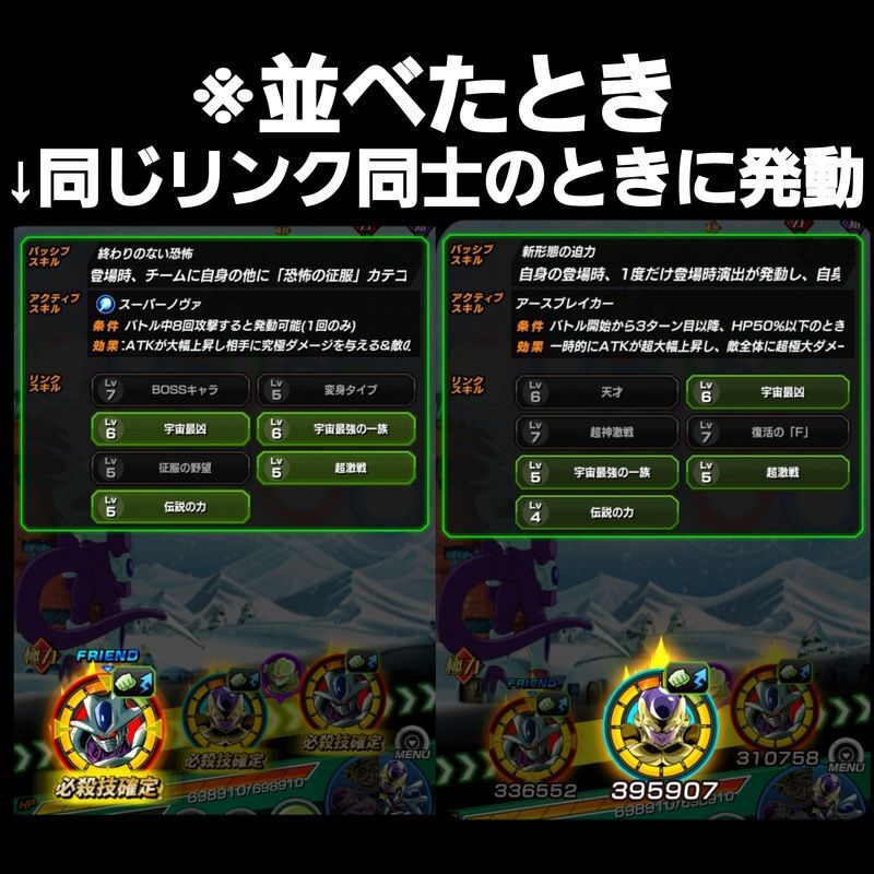上の画像の通り、左枠のクウラと真ん中のクウラのリンクが通ってないですよね?実は同名キャラにはリンクが通らないのです。同名キャラというのは名称が全く同じキャラのことです。