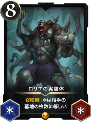 「ロリエの実験体は」は8コストなので大体8ターン目には召喚可能だが、能力は相手の墓場の数によって決まるので最速召喚だけが正解というわけではない。