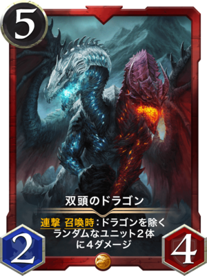 連撃 召喚時:ドラゴンを除くランダムなユニット2体に4ダメージ |