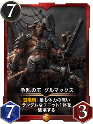 召喚時:最も体力の高いランダムなユニット1体を破壊する |