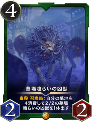 毒殺 召喚時:自分の墓地を4消費して2/2の墓場喰らいの凶獣を1体出す |