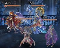 | アリスが恐ろしいほど活躍する。ウォーリアは3体なのでかなり有効だが、最初の全体攻撃をする上でスピネ等のギガバフできるキャラがいないときつい。ソマリ等の打消しもスフィア対策にほぼ必須。蘇生のできる右下を真っ先に倒し、次に弱っていればスフィア、あとはキュアンをどれだけ早く追い込むかがポイントで、一度でも回復を食らえばほぼこちらの負け。反撃と高い攻撃力を持つセシルは後回しにしよう。キュアンが憎くなる高難易度ステージ。 | |