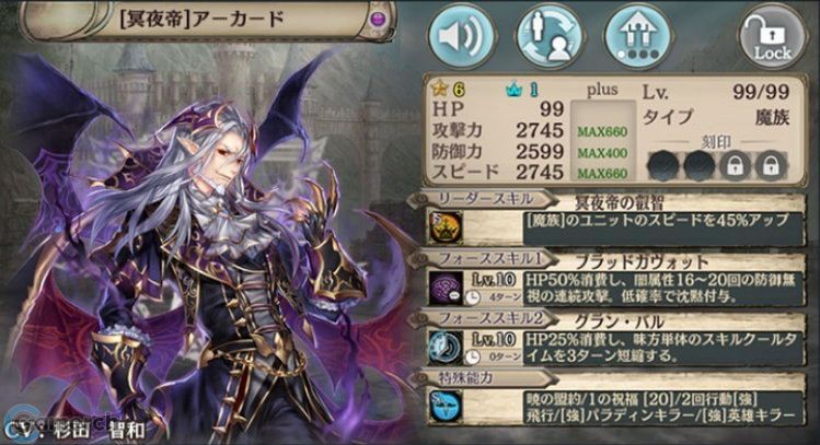 1の祝福20により20回倒されても大丈夫だが暁の盟約により毎ターンダメージを受けてやられてしまうため1ステージ中20回倒れるまでにステージを突破しなければならなく、中々扱いのが難しいと思われます。2つのキラーと2回行動などを活かして敵を一気に攻めよう。またスキルは両方ともHP消費のスキルだが、元々のHPが低いため気にせずにHP消費のスキルをガンガン使えるのは良い所かなと思います!