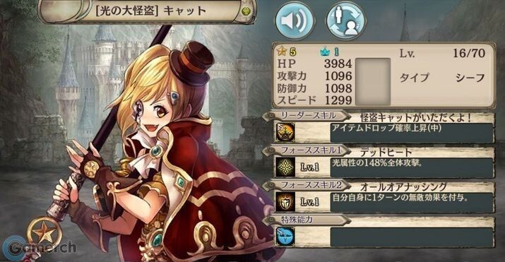 | リーダースキル | 怪盗キャットがいただくよ! |