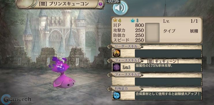 | 同属性と合成すると9万の経験値、他属性と合成すると6万の経験値 |