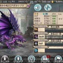 | Lv1   闇属性の136%全体攻撃。 Lv10 闇属性の176%全体攻撃。