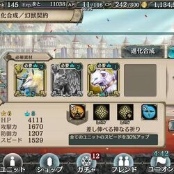 | 【一角獣】ユニコーン×2体、【炎輝鳥】デスフェニックス×2体、【光神獣】ルミナスザンド×1体、200,000ゴルド | |