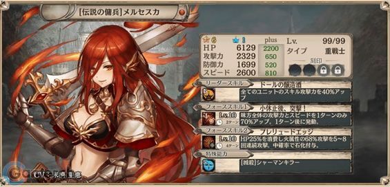 Lv10:味方全体の攻撃力とスピードを1ターンのみ70%アップ、1ターン後に発動。 |