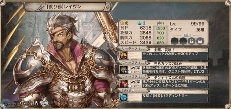 Lv.1:敵単体に光属性の31%ダメージ9連撃。上昇効果を打ち消す。クエスト開始時、CTが3。