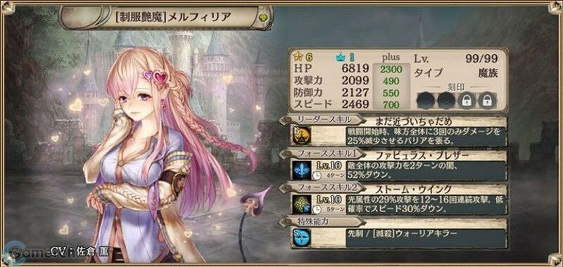 | Lv.10:敵全体の攻撃力を2ターンの間、52%ダウン。 |