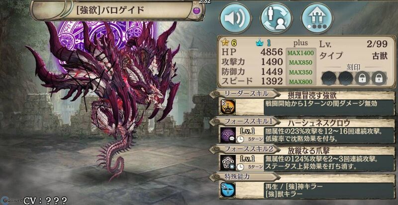 | Lv.1:闇属性の23%攻撃を12~16回連続攻撃。低確率で沈黙効果を付与。 |