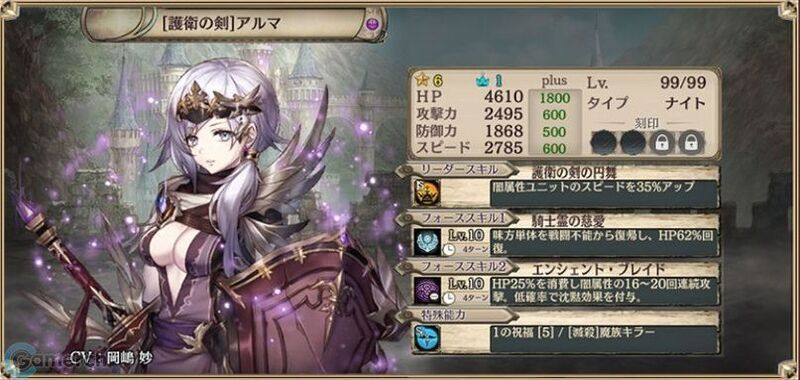 | HP25%を消費し闇属性の16~20回連続攻撃。低確率で沈黙効果を付与。 |