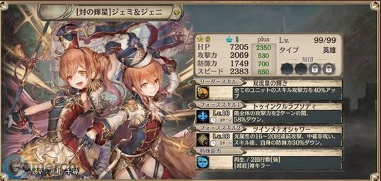 【対の輝星】ジェミ&ジェニの基本データ