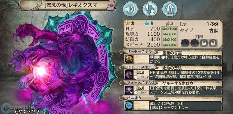| Lv.1 HP25%を消費し、闇属性の13%攻撃を16~20回連続攻撃。ステータス上昇効果を打ち消す。 |