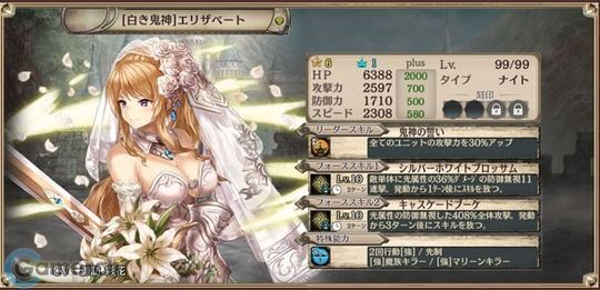 | Lv10:光属性の防御無視した408%全体攻撃。発動から3ターン後にスキルを放つ。 | |