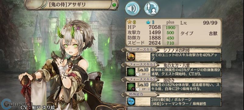 | Lv.10 敵単体に樹属性の45%ダメージの防御無視9連撃。クエスト開始時、CTが3. |
